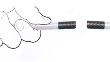 | Bind masking tape tightly around the hose at the required length and cut through using a fine tooth saw blade, leaving tape on both ends so that it retains the braid. Clean any debris from the cut end and inside the hose. |