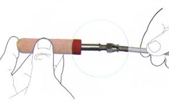 | Using an appropriate Goodridge mandrell, flare out both ends of the stainless steel overbraid from the P.T.F.E. inner tube. |